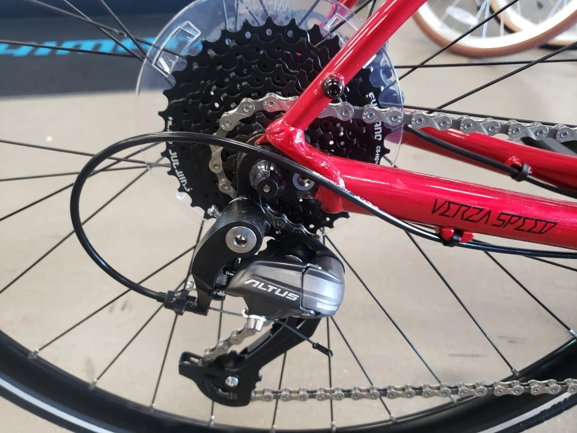 The Verza Speed 40 has been updated with a wider gearing range for better climbing and better gears on the flat. The disc brakes give dependable and confidence-inspiring braking for a great overall package. The Verza Speed 40 is built and spec’d for fitness, versatility, and fun. The bike is built with a flat road handlebar for confident handling and an aluminum frame and fork that are both durable and lightweight. Great around town, as a commuter, and for workouts, it’s the perfect bike for any occasion. For additional information or photos, please call us at 850-374-8797.